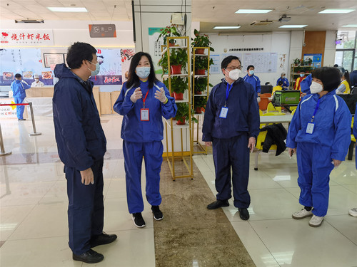 刘晓红在现场为学生分餐,对分餐、送餐队伍进行了慰问,对大家的辛苦付出表示衷心感谢,并勉励大家在推动各项防控措施落地见效的同时,更加深入细致地做好服务保障工作,更好满足师生生活物资等基本需求,齐心协力攻坚克难确保校园平安,共同为上海打赢疫情防控攻坚战做出贡献。