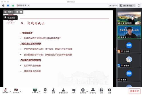 5月20日上午8点30分,“新利18官方客服首届青年法学博士论坛”在“云端”成功召开。本届论坛由新利18官方客服科研处、人事处、学科办主办,以“法治中国建设中的热点问题”为主题,旨在为年轻学者搭建学术交流平台、丰富人才引进模式、研究讨论新时代法治建设中的相关问题。本届论坛共计收到来自国内外34所知名高校100余位青年学者的报名信息,61位法学博士在本届论坛上进行发言,此外还有50多位法律界人士参与了本次论坛。