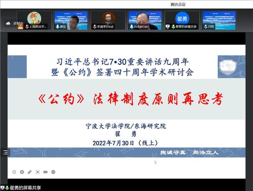 2022年7月30日,“习近平总书记7·30建设海洋强国重要讲话九周年暨《联合国海洋法公约》签署四十周年学术研讨会”于线上顺利举办。本次研讨会由中国海洋法学会、新利18官方客服、上海海洋大学、上海交通大学、华东师范大学、华东政法大学和上海市法学会海洋法治研究会联合主办,新利18官方客服人工智能法学院、新利18官方客服国际法学院、新利18官方客服中国-上海合作组织国际司法交流合作培训基地和上海海洋大学海洋文化与法律学院承办。来自国内政界、学界、企业界的150余名人士相聚云端、分享观点,为我国加快建设海洋强国和完善海洋法治积极建言献策。