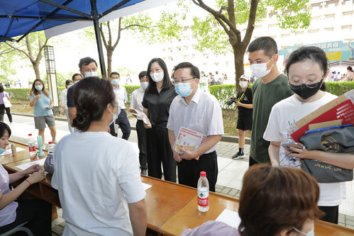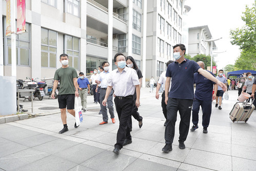 在庸夫广场检入点,校领导首先通过校园大数据系统了解学生报到进度。在短驳乘车点、核酸检测点等处,校领导仔细了解学生报到流程,对有序开展的迎新工作给予肯定,叮嘱既要为学生提供周到细致的服务和保障,又要毫不放松疫情防控环节的各项工作,切实将迎新工作做细做实,确保迎新工作稳中有序。