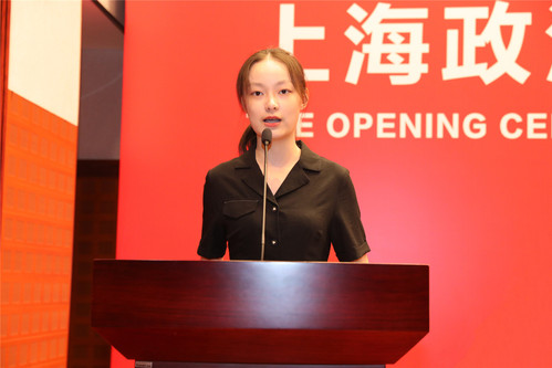 在校生代表,刑事司法学院2019级费静怡同学,分享了她从上政走上联合国舞台、担任疫情防控志愿者、党史宣讲等在上政学习实践、志愿服务等方面的经验。
