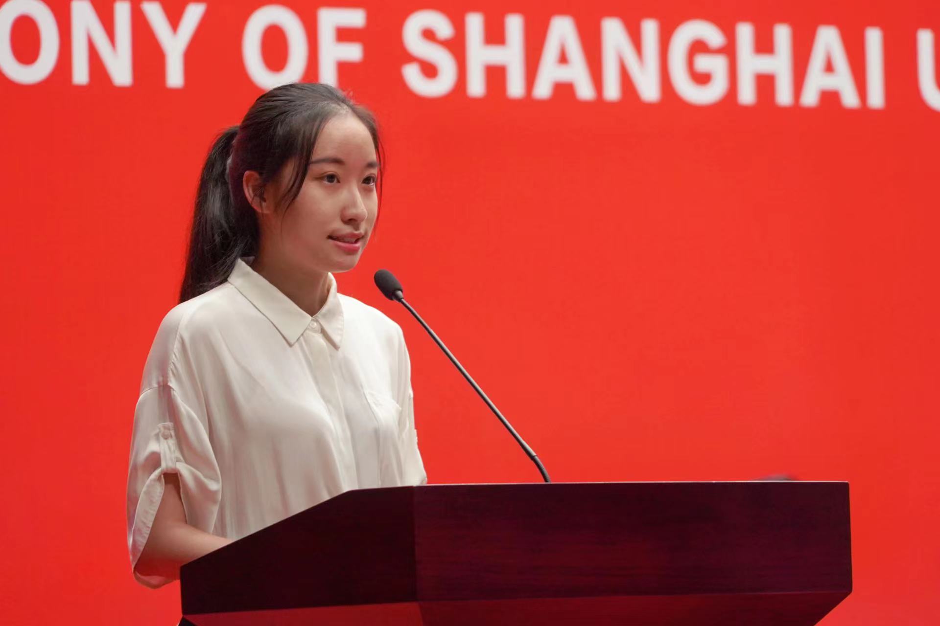 新生代表经济法学院22063班的王妍羽发表了自己的“上政新声”:做一个心中有理想、做事有担当的上政青年学子。