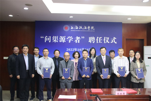 刘晓红、黄润源共同为受聘学者颁发聘书,郑少华与受聘学者签署聘任协议书。