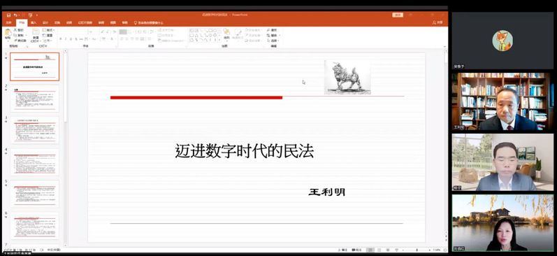学校要闻 11月4日下午,由科研处和人工智能法学院共同主办的“名家讲坛”第122讲顺利举办。本次讲座邀请中国法学会副会长、中国法学会民法学研究会会长、中国国际经济贸易仲裁委员会副主任、北京仲裁委员会委员、最高人民法院国际商事专家委员会委员、最高人民检察院专家咨询委员中国消费者协会副会长、中国人民大学一级教授王利明为我校师生作题为“迈进数字时代的民法”讲座。