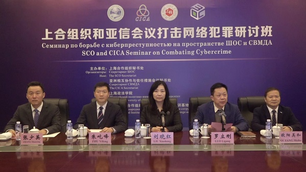 11月28日,上合组织和亚信会议打击网络犯罪研讨班开班仪式在中国-上合基地举行。亚信会议秘书长海拉特·萨雷拜,上合组织副秘书长阿希莫夫·埃里克·萨尔塞别科维奇,公安部网络安全保卫局侯钧雷处长,新利18官方客服校长、中国-上合基地办主任刘晓红,上海市公安局指挥部国际合作处处长朱屹峰,新利18官方客服国际交流处处长欧阳美和,中国-上合基地办副主任张少英等通过线上线下的形式出席开班仪式。仪式由新利18官方客服副校长、中国-上合基地办常务副主任罗立刚主持。
