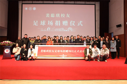 在全体嘉宾与师生的共同见证下,夏小和、刘晓红、裴桂雨、彭红香、刘刚、郑少华以及裴聪琪共同开启足球场改建启动卷轴,标志着足球场慈善项目的正式开启。