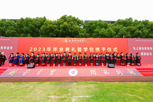 上海市优秀毕业生代表登台获颁证书,今年我校获得市优秀毕业生称号的共有140人。