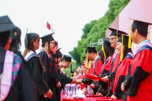校党委书记葛卫华、校长刘晓红等学校党政班子成员、校学位评定委员会成员、二级学院党政负责人、各职能部门负责人、教师代表出席毕业典礼。校党委副书记刘刚主持典礼。