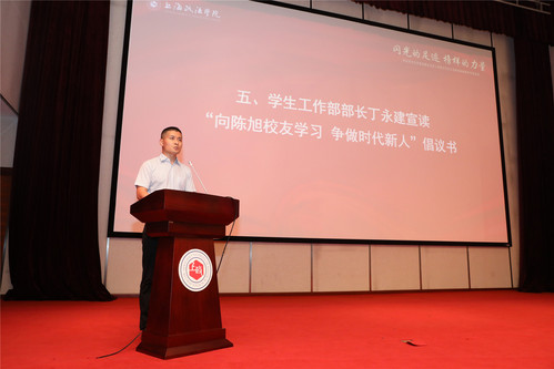 为深切缅怀英雄壮举,营造向英雄学习的浓厚氛围,学生工作部部长丁永建现场宣读了“关于向陈旭校友学习、争做时代新人”的倡议书,号召全体上政学子把崇尚英雄、学习英雄的风尚转化为刻苦学习、追求卓越的强大动力,开拓创新、砥砺奋进,争做有理想、敢担当、能吃苦、肯奋斗的新时代好青年。