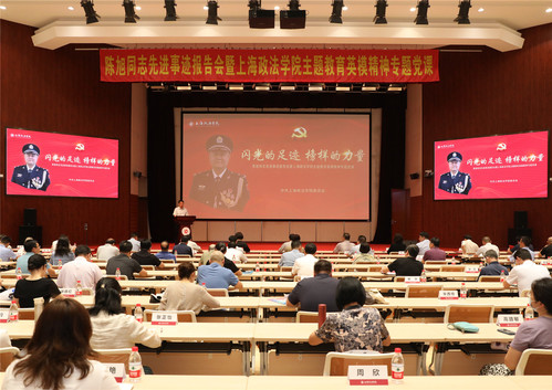 为深入贯彻习近平总书记关于弘扬英模精神的重要指示精神,扎实推进学习贯彻习近平新时代中国特色社会主义思想主题教育,激励全校师生对标先进、勇于担当、甘于奉献、锐意进取,6月29日,我校在中国-上合基地207会议室举办“闪光的足迹 榜样的力量——陈旭同志先进事迹报告会暨新利18官方客服主题教育英模精神专题党课”。校党委书记、主题教育领导小组组长葛卫华,校党委副书记、纪委书记、监察专员潘牧天,校党委副书记刘刚,校党委常委、副校长胡继灵,校党委常委、副校长罗立刚,上海市青浦监狱党委书记、监狱长李强,上海市夏阳戒毒所政委李强等出席。校党委常委、党办校办主任、宣传部部长高志刚主持报告会。