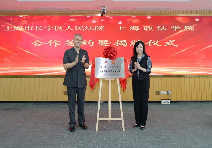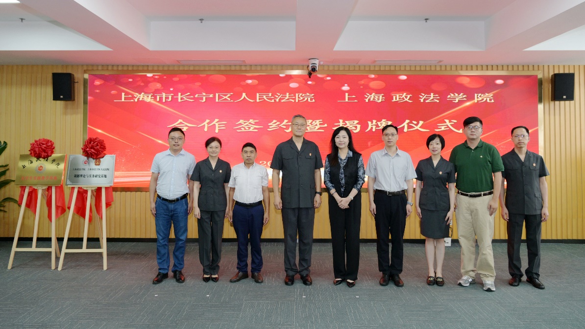 揭牌仪式上,刘晓红校长与孙培江院长,我校法律学院(调解学院)副院长杨向东与长宁法院党组成员、副院长彭志娟分别为“调解理论与实务研究基地”和“大学生实践教学基地”揭牌。长宁法院党组成员、政治部主任彭小萍宣读聘任决定,聘请我校法律学院(调解学院)侯怀霞、王康、杨向东、张西恒、赵园园、江晨、孙哲、李露雅8位教师为特聘调解咨询专家。我校专家代表及长宁法院中层干部等参加签约暨揭牌仪式。