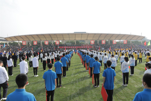 开幕式上,校领导与嘉宾、师生代表共同为裴聪琪校友捐赠建设的运动场启用剪彩。