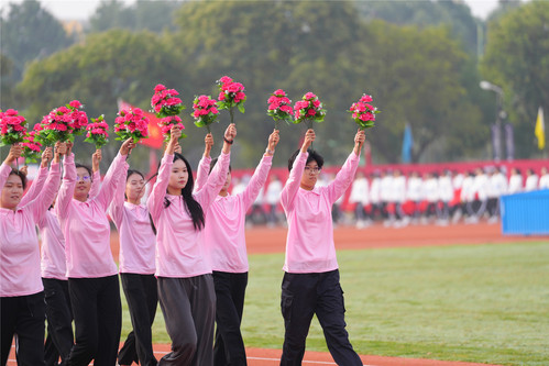 焕然一新的体育场上洋溢着青春活力。在全场热烈的气氛中,校党委书记葛卫华宣布运动会开幕,校党委副书记、校长刘晓红致开幕词,校党委副书记刘刚主持开幕式,副校长郑少华、罗立刚分别为校板球队颁发2023年全国板球锦标赛奖牌。