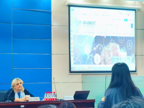 会谈前,马拉古提教授为我校师生作“国际统一私法规则的最新发展”讲座,对国际统一私法协会的历史以及最新发展进行了详细介绍,深入分析了协会在目前工作中面临的重要问题和挑战。她认为,国际法律规则能够为不同国家架起沟通的桥梁,在当今世界全球化背景下至关重要。讲座结束后,马拉古提教授耐心回答了现场学生的提问,并以自己的亲身经历勉励我校学子夯实专业基础,精进语言能力,做真正的国际化人才。