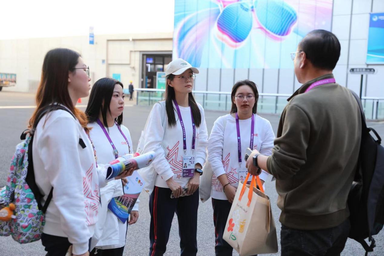 随后,葛卫华一行赴服务点位,看望了正在开展志愿服务的“小叶子”,认真询问志愿者们的工作情况,对大家参与到进博会服务保障工作并高水平完成各项任务表示肯定,并提醒同学们注意天气冷暖变化,做好防寒保暖。