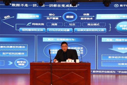 首场讲座中,顾全以“涉数字经济纠纷法律适用问题类型化研究”为主题开讲《数字经济司法实务研究》课程总论。他从数字经济对当下法律关系的影响出发,指出要围绕数字经济的权益保护为主线,从六个方面详细讲解了数字经济纠纷中涉及的相关法律问题。第一部分“客体特征及权利性质甄别”探讨了数据与法定“在先权利”的关系、个人信息与关联性人格权,以及数字经济时代个人信息的范围和特征。第二部分包括涉数字经济纠纷的法律规范调整范围与对象,强调当事人权益保护,并提及数据权利限制、法定免责制度与技术路线办案思路。第三部分从人格权益的主动处分和被动防御角度阐述了个人信息及关联人格权益的分类保护,并讲解了数据及数据形态财产权益的分类保护路径。第四部分强调平台作为特殊主体应正确认识立法目的、适用前提以及主体关系认定,以完善对消费者等相对方的保护,同时平台还具有一些类型化的法定义务。第五部分从侵害人格权益、数据形态财产权益、平台法定义务履行角度,结合《民法典》讲解了“合理性”裁量的重点内容。第六部分有关共同责任与责任竞合问题,提出强保护优于弱保护的原则,并提出了最有利于权利救济的方案。最后,顾全介绍了上海法院数字经济司法研究及实践(嘉定)基地对数字经济案件的分类研究体系。