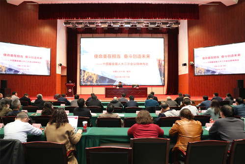 学校要闻 3月19日下午,学校在中国-上合司法培训基地举行党委中心组(扩大)学习会,邀请全国人大代表、华东师范大学党委书记梅兵作2024年全国两会精神专题辅导报告。校党委书记葛卫华主持学习会,学校党政领导及全体中层干部参加学习。