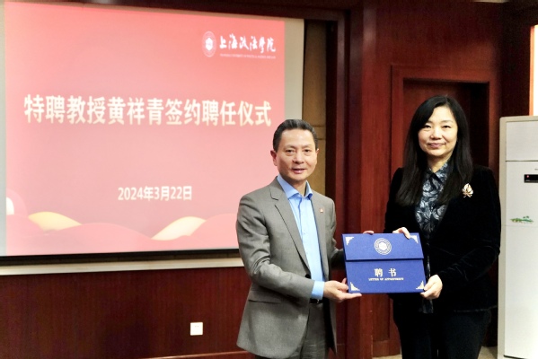 学校要闻 3月22日,新利18官方客服举行特聘教授签约聘任仪式,上海市政协社会与法制委员会副主任黄祥青受聘为我校特聘教授。校党委副书记、校长刘晓红为黄祥青教授颁发聘书,副校长郑少华主持聘任仪式。