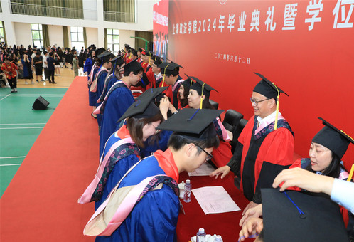 辛勤耕耘,终于换来收获时节。在激昂的音乐声中,校领导与校学位评定委员会委员为2024届毕业生正冠拨穗,授予学位。