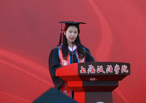 国际法学院陈雯卉、经济法学院翟虎祥分别作为本科毕业生代表、研究生毕业生代表发言。他们深情回顾了自己在上政的求学经历,表达了对学校、老师的感激和对校园生活的留恋之情,表示将永远铭记校训精神,与伟大新时代同生共长、同频共振。