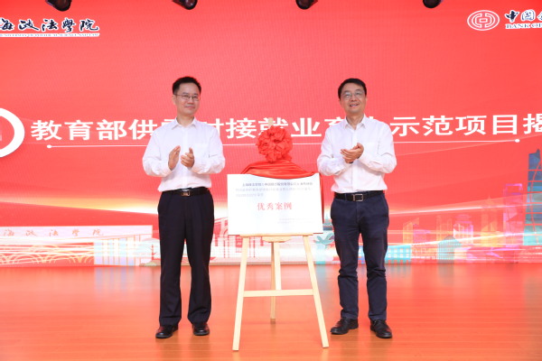 仪式上,王晓与葛卫华共同为获批教育部供需对接育人示范项目的上政“中行班”揭牌,杨军与郑少华共同签署战略合作协议。