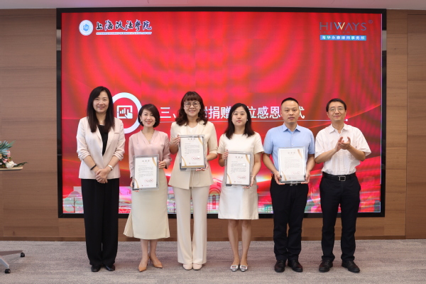 研讨会上,葛卫华、刘晓红为北京神州龙芯智能科技有限公司、上海七方律师事务所、上海君澜律师事务所以及上海标宏资产经营管理有限公司负责人颁发了感恩函,感谢他们长期以来对学校事业发展的支持与帮助。