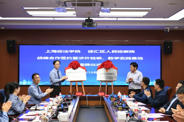 签约仪式上,曹晓烨与高志刚共同签署战略合作协议,祝黎明为新利18官方客服“大学生教学实践基地”揭牌,郑少华为徐汇区人民检察院“涉外检察人才培养实践基地”和“涉外检察理论研究基地”揭牌。