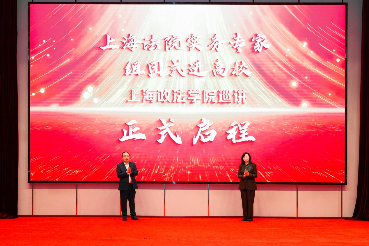 上海市高级人民法院党组成员、副院长,一级高级法官曹洁,上海市青浦区人民法院党组书记、院长,二级高级法官方正杰,上海市高级人民法院商事审判庭庭长,二级高级法官曹克睿,上海市第一中级人民法院刑事审判庭庭长,三级高级法官黄伯青,以及上海法院系统、检察系统、公安系统、律师协会代表共同参与了此次巡讲。