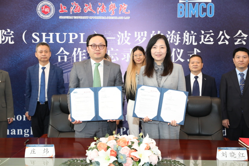 In order to further expand the channels of international educational cooperation and exchange, and contribute to the cultivation of applied foreign legal talents with solid legal knowledge, on May 11th, Shanghai University of Political Science and Law held a signing ceremony with BIMCO. Liu Xiaohong, the President of the Shanghai University of Political Science and Law, and Zhuang Wei, the General Manager of the BIMCO Asia Pacific Region, attended the signing ceremony and delivered speeches.
