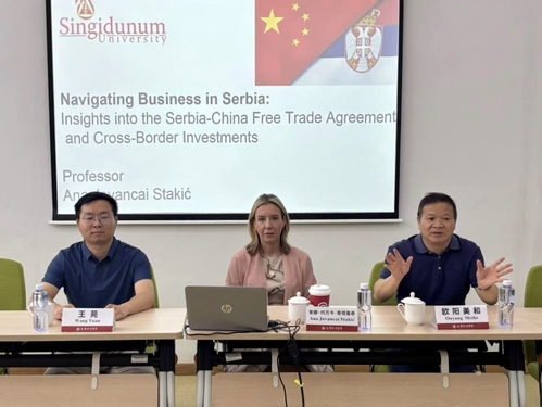 During the visit, Prof. Ana Jovancai Stakić and Prof. Nataša Kostić addressed the 137th session of SHUPL Overseas Lectures – titled Serbian Business: The Serbia-China Free Trade Agreement and Cross-border Investment. This lecture mainly explored the economic and trade exchanges and cooperation between Serbia and China, the investment advantages and future prospects of China in Serbia, as well as the profound friendship and cultural exchanges between the two countries. Prof. Wang Yuan hosted the lecture.