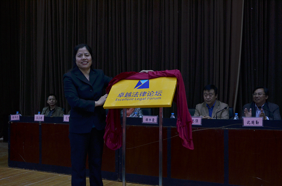 接着,法律学院院长侯怀霞教授为法律学院“卓越法律论坛”揭牌,并发表讲话。她说,法律学院有幸承接上海市应用型卓越法律人才基地建设,在此过程中,法律学院创建卓越法律论坛这一特色品牌,法律学院以此为支点,和实务部门协作,开展从理论到实务的一系列讲座,使让同学们借此来了解社会,参与社会,获得全方面的发展。她说相信未来卓越法律论坛会越做越好,法律学院也会为学生竭尽全力打造更广大的平台,把学生培养成适应社会需要的,具有动手能力的卓越法律人才。