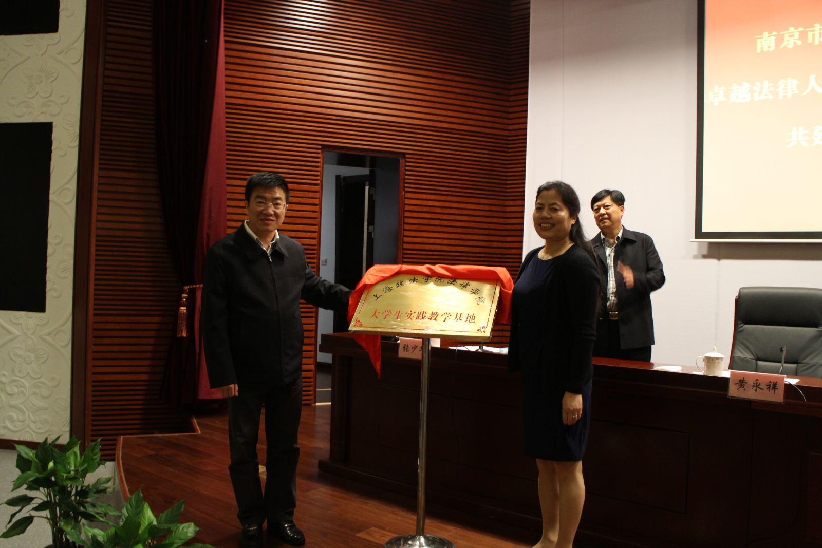 上午,新利18官方客服法律学院与南京市司法局在南京市委党校会议室举行了合作共建基地揭牌仪式。会上,法律学院院长侯怀霞教授与南京市司法局局长黄永祥共同为“新利18官方客服法律学院大学生教学实践基地”和“南京市司法局人民调解课题研究基地”揭牌。
