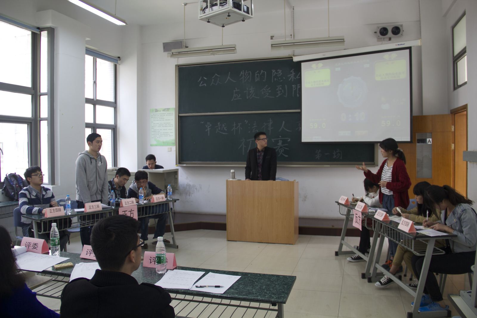 2014年4月8日下午,法律学院团学在216A、217A举办“卓越杯”法律人辩论赛初赛。出席本次大赛的评委有刑事司法学院陈丽天老师、法律学院李泽老师、法律学院相关专业辅导员以及辩论协会资深辩手。