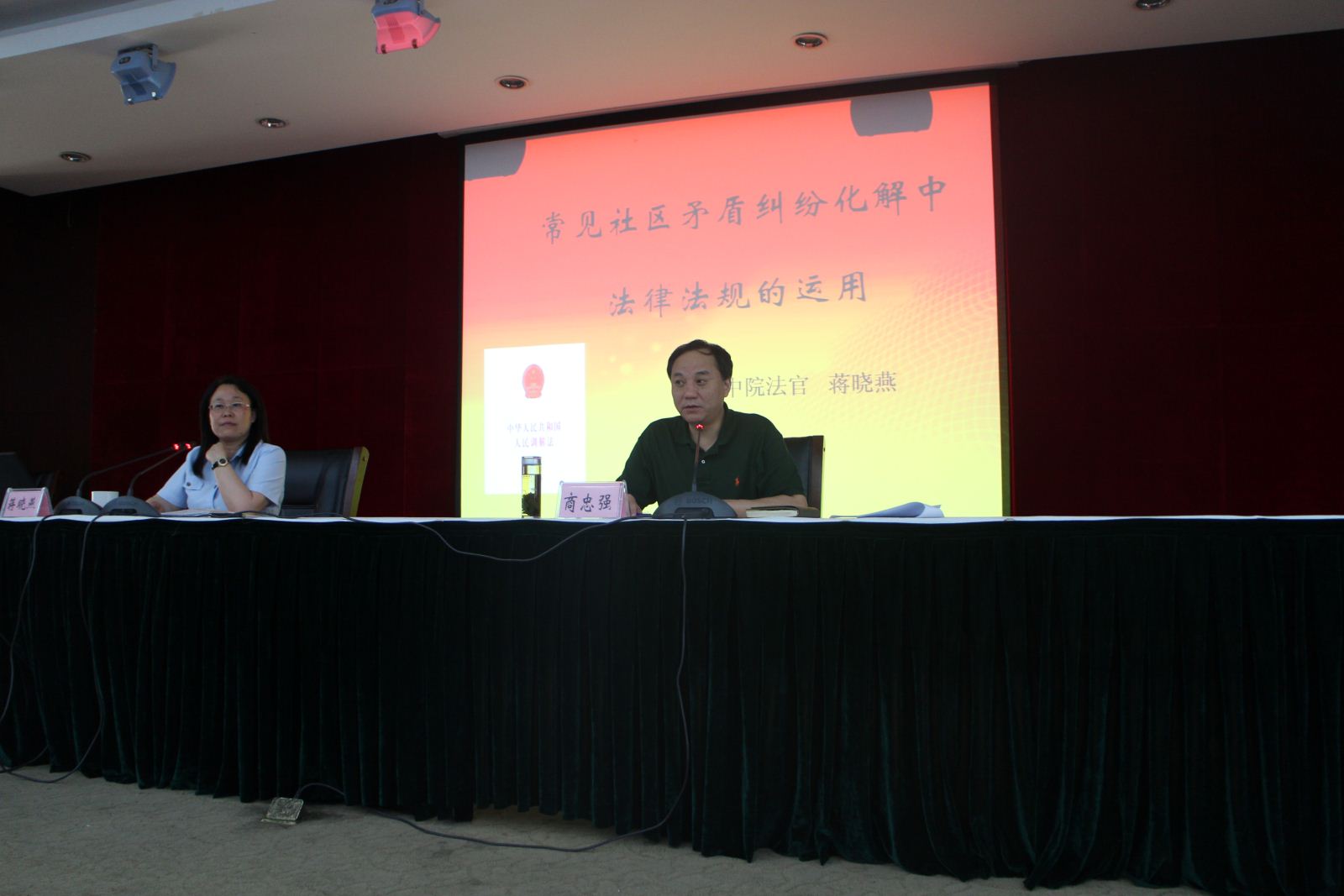 本次活动分为两个环节。第一环节由上海市二中院的蒋晓燕法官主讲了“常见社区矛盾纠纷化解中法律法规的运用”。讲座通过对医疗、遗产、婚姻等方面的调解实例,介绍了遇到此类纠纷时的处理方法以及法律的运用,使人民调解专业的学生增长了实践知识,受益匪浅。