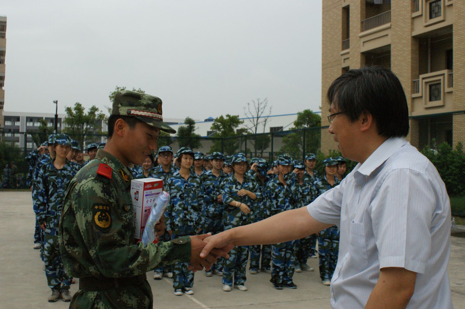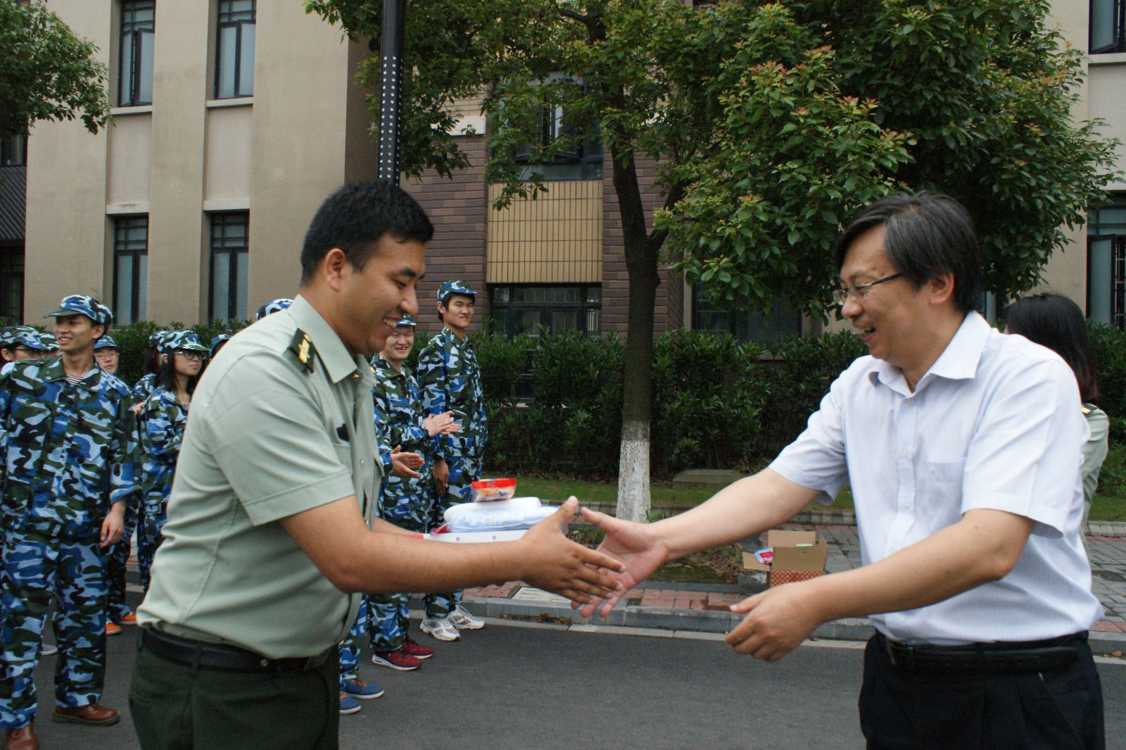 法律学院领导十分关心学生的军训生活和健康状况,为了鼓励法律学院2013级学生能够再接再厉,以更加良好的精神面貌完成军训,2014年6月23日上午,法律学院党总支书记沈国勤前往训练场地,在丝丝细雨中,代表学院全体教职员工对正在参与军训的全体学员进行了亲切的慰问,对承训教官、带训辅导员和军训导生表达了深切的关怀,并向他们发放了毛巾和香皂等慰问品。沈国勤书记对法律学院同学们在军训中的表现表示认可,叮嘱大家要在认真训练的同时注意身体,劳逸结合。最后,祝愿我院全体学员能够发扬不畏艰难、勇往直前的精神,刻苦训练,圆满完成本次军训。