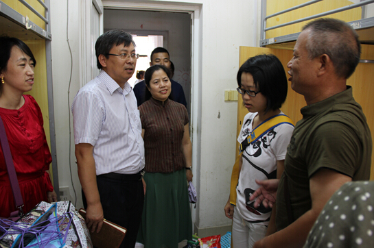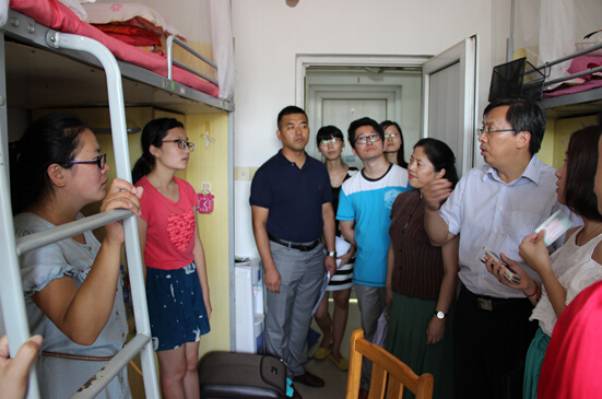 2014年9月6日、7日,法律学院院长侯怀霞教授、党总支书记沈国勤同志及学院新生辅导员一同来到学生宿舍楼,走进新生寝室,与新生家长亲切交流,关心学生寝室条件与生活状况。