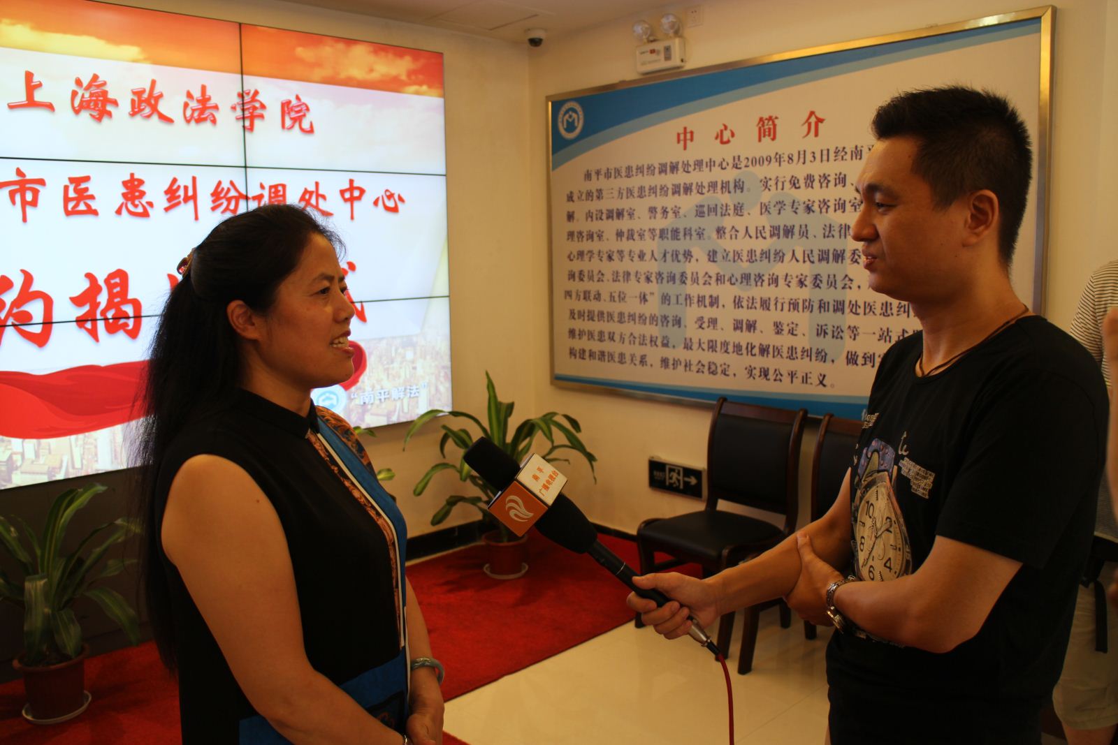 最后,法律学院院长侯怀霞教授接受了南平市电视台的专访。她说,这是新利18官方客服法律学院的第二家上海以外地区的“大学生实践教学基地”,也是践行学校“服务上海,面向全国”目标的积极探索。这种方式对于高校大学生实践能力的培养,就业的选择、视野的开拓具有重要意义。南平市在医患调解方面走在全国前列,形成“南平解法”。新利18官方客服法律学院在人才培养,师资建设、实践研究等方面有着优势,希望双方能够在人才培养、实践教学、实践研究方法继续深化务实合作基础,开创高校与实务部门合作的示范典型。(丁明强撰稿、摄影)