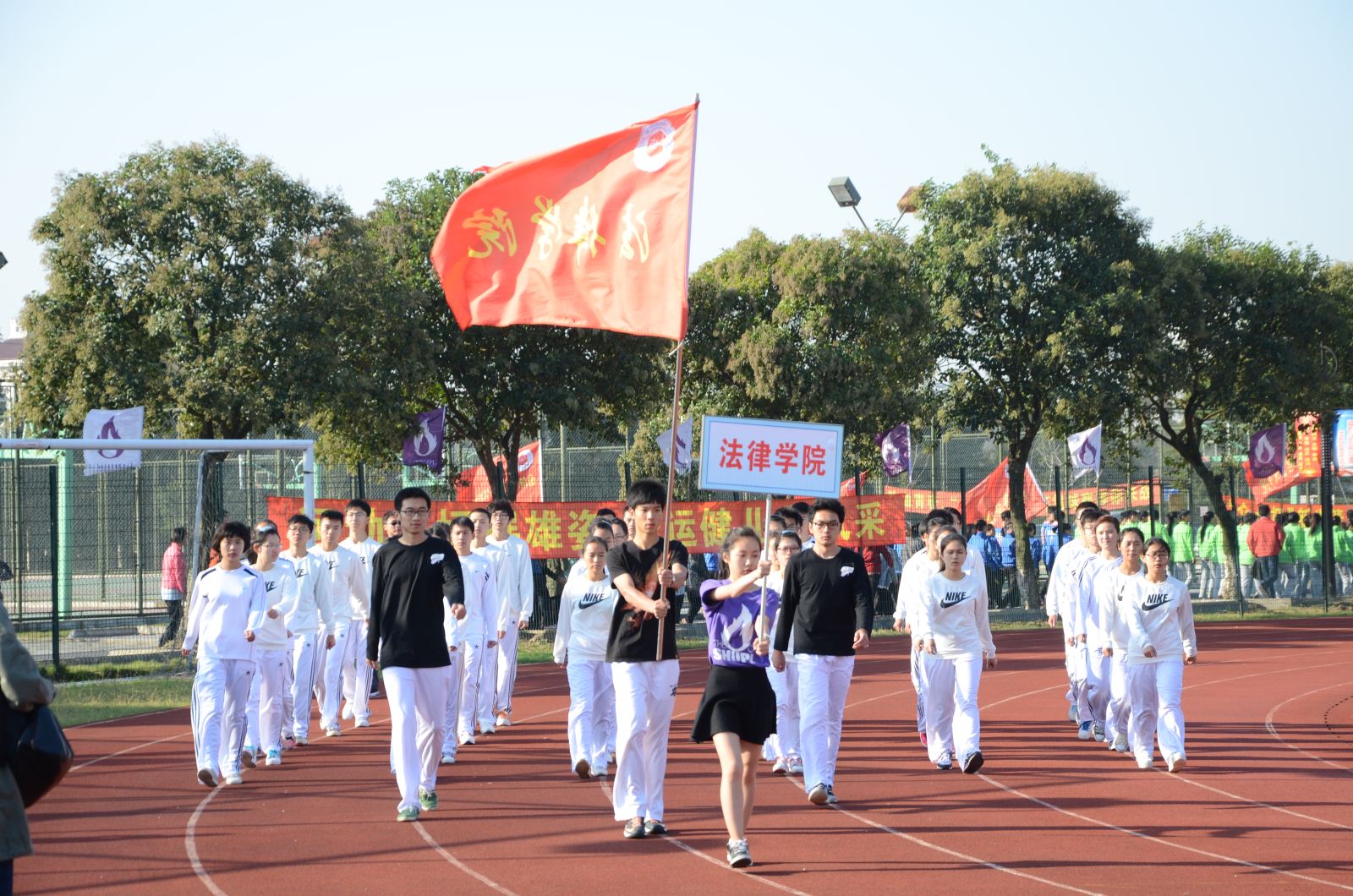 在为期两天的运动会中,法律学院师生积极参与、奋勇争先,展现了良好的精神面貌。整齐划一的方阵队列,精神抖擞的广播操比赛,还有在田赛、径赛中努力冲刺、顽强拼搏的身影,都诠释了法律学院在本次运动会中“团结进取,开拓创新,顽强拼搏,永争第一”的口号。看台上,观赛的同学是我院运动员们最坚实的后盾,他们文明观赛、心系赛场,加油声、呐喊声此起彼伏,为运动员加油助威。