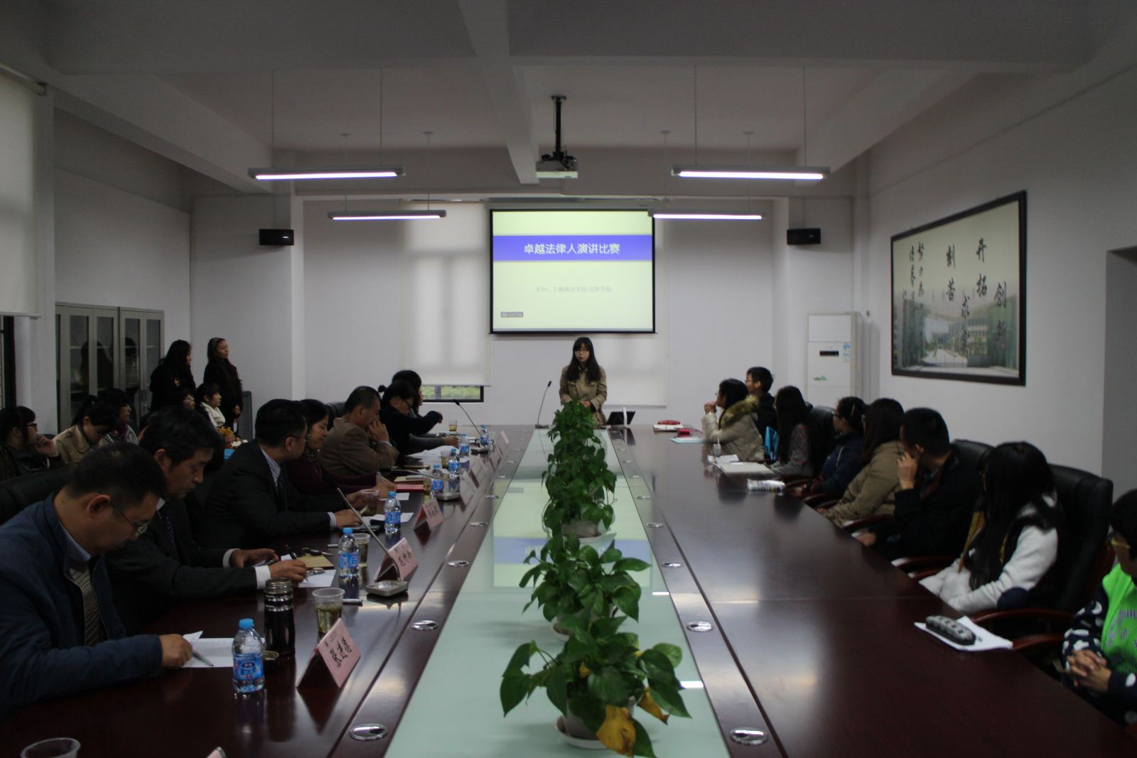11月25日下午,法律学院在法学楼B2-110会议室举行“卓越法律人”演讲比赛,出席此次活动的有法律学院院长侯怀霞教授、台湾高雄大学法学院院长廖义铭教授、中华电子商务产业协会会长谢长峻、上海利歌律师事务所主任柴小雪、上海范仲兴律师事务所主任范仲兴、法律学院院长助理闯晓燕、法律学院诉讼法教研室主任张进德副教授、法律学院辅导员丁明强。活动由李婕同学主持。