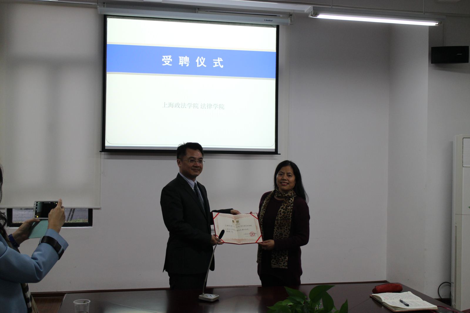 同时,廖义铭教授受聘为法律学院兼职教授。廖义铭教授讲到:自己愿意做两岸法学领域交流的桥梁,同时自己也是抱着学习的态度来访,希望两校之间能够在教学、科研、人才培养等方面相互学习借鉴。