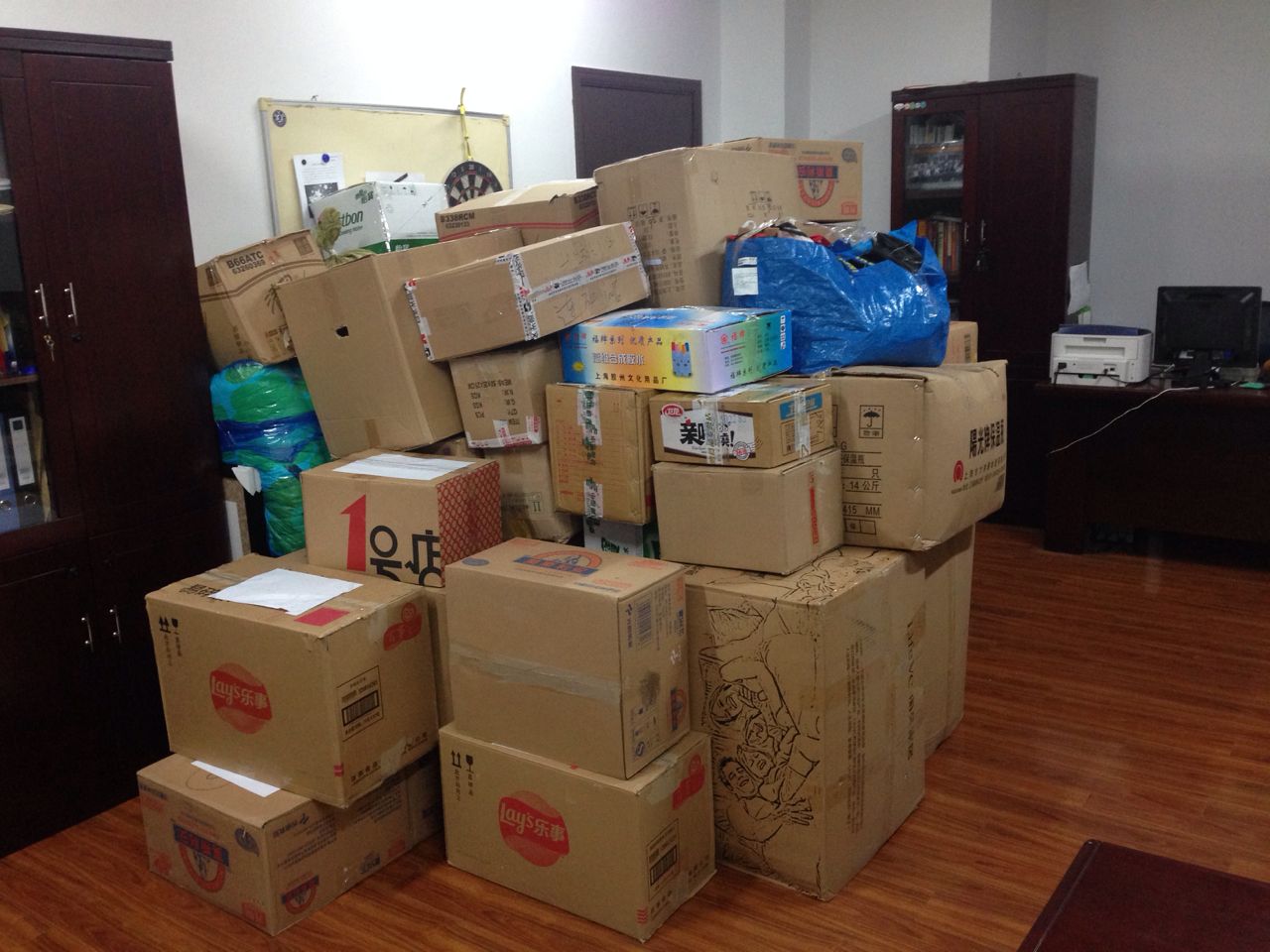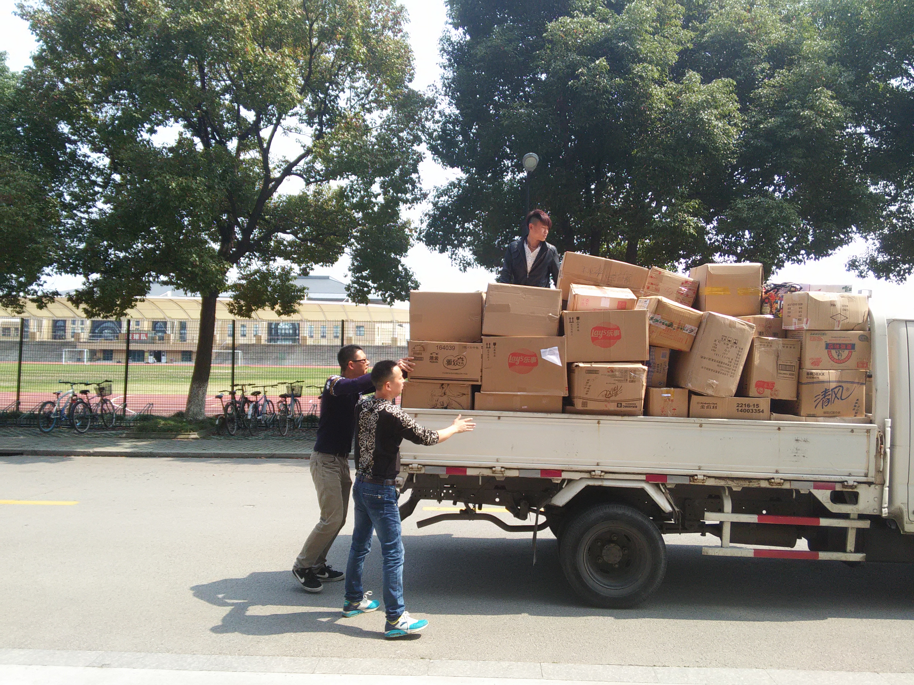 学校快递服务中心得知此次公益活动,快递服务中心负责人冯杰经理主动帮忙联系物流公司,并慷慨解囊资助1000元物流费用,此举得到了师生们称赞和感恩。上房物业公司与上政客服中心的周华先生与倪利群女士也积极帮助志愿者协调捐赠物资的装运,为捐赠活动增添了一份温馨与感恩!