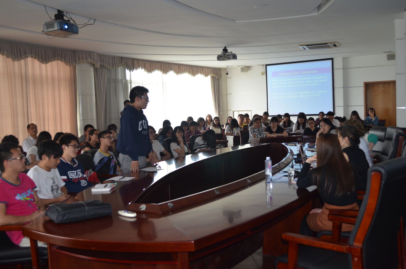 首先,法律学院院长侯怀霞教授对两位海外专家的到来表示热烈的欢迎,希望在场学生可以通过此次讲座,对中西法律体系差异有更加深入的理解,拓展专业知识维度,建立法律知识国际视角。随后印第安纳大学麦肯尼法学院法学院教授Shawn Boyne以及印第安纳大学法学院副教授Emily Morris分别作了主题为“警察枪击事件是否会在美国愈演愈烈”和“美国生物制药行业知识产权现状”两场讲座。就美国枪击案件以及生物医药产业知识产权现状分别进行了介绍和讨论,现场学生积极与海外教师互动,同学们纷纷表示受益匪浅。