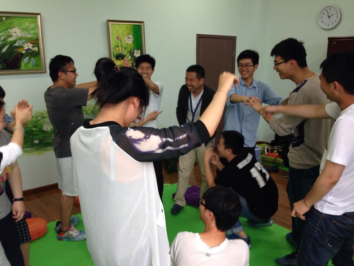 其次,同学们来到团体心理咨询室进行团体咨询沙龙。本期的主题是情绪管理与调控。第一个环节是破冰。每位同学做自我介绍并请其它人送给同学一句肯定、积极的、有正能量的话,借此告诉大家要学会发现“美”,增强自己的信心。第二个环节“心有千千结”。让同学们懂得了在一个团队里,大家要有团结协作精神,要互相配合、合作,服从安排,才能出色的完成工作。第三个环节音乐放松训练。通过“盘腿打坐”与自己的内心对话,更深刻地了解自己的需求,这样的积极暗示,对于缓解焦虑情绪与人格敏感程度,建立自信心非常有帮助。