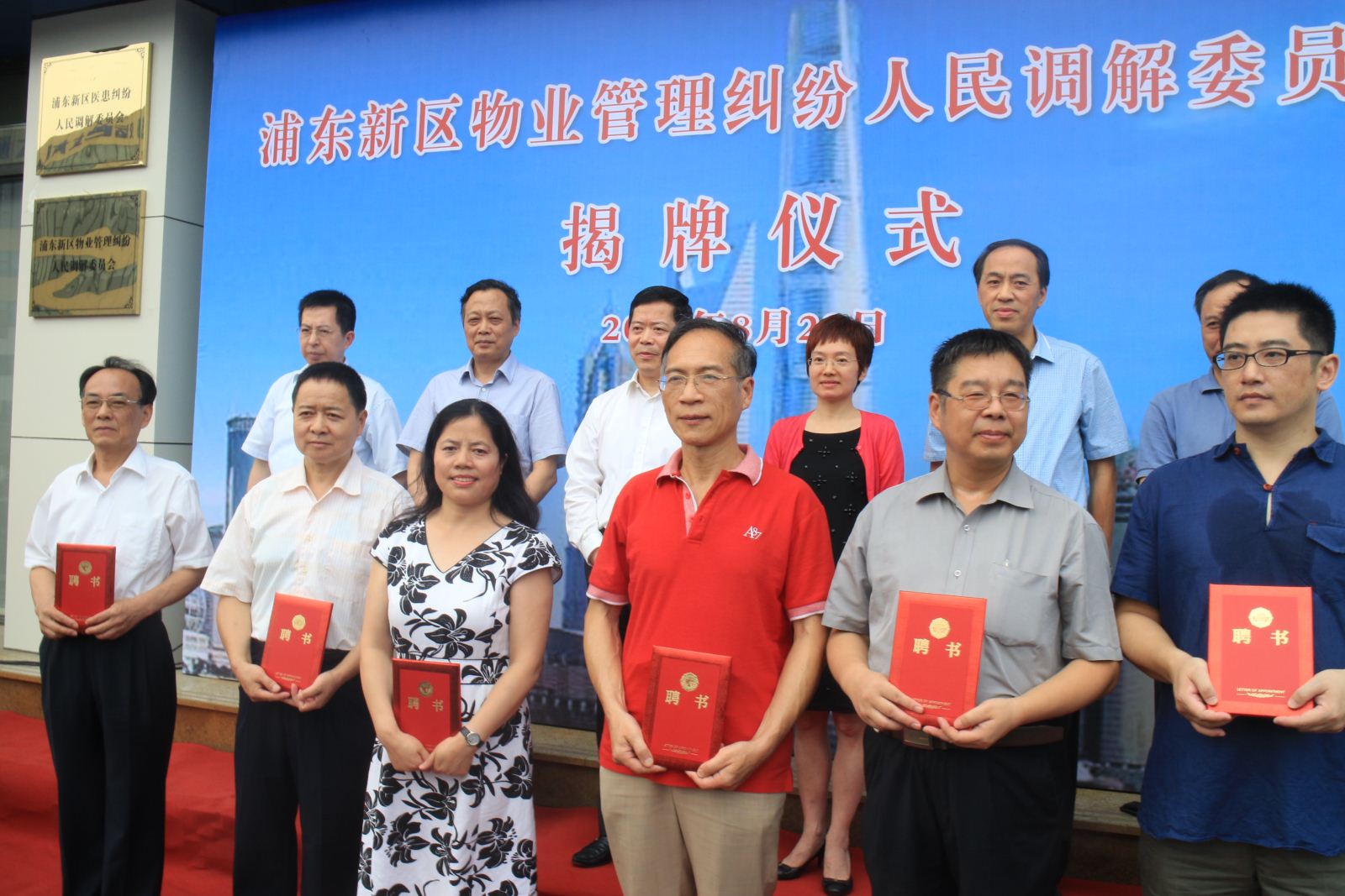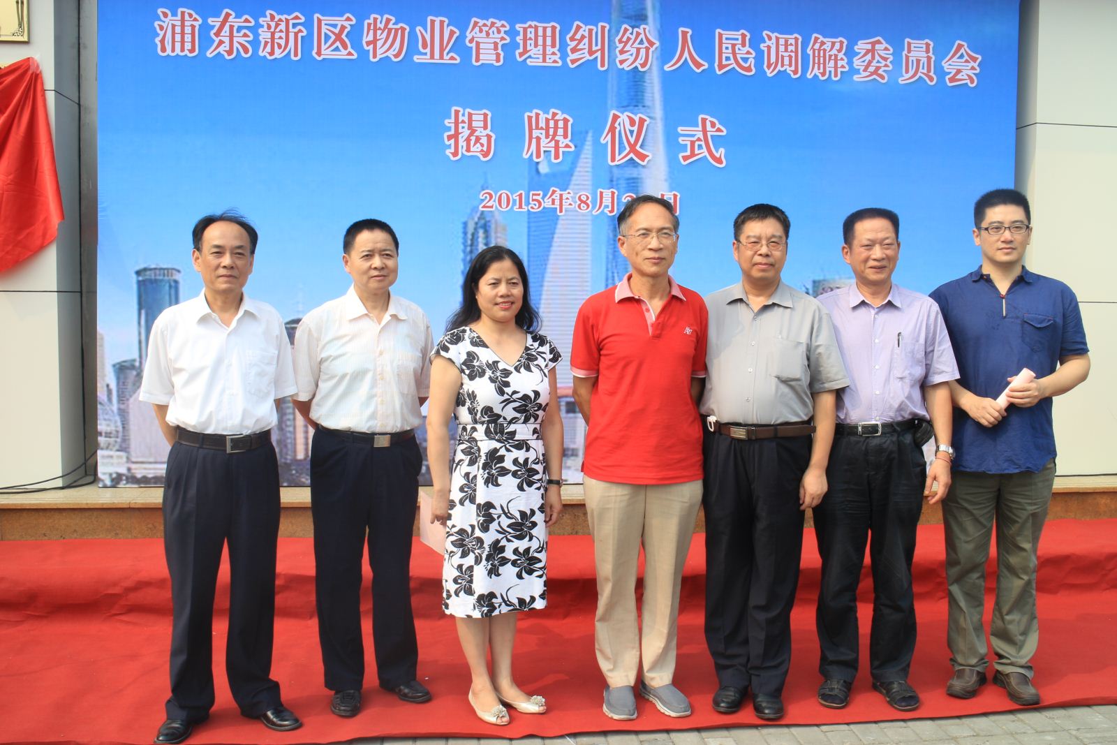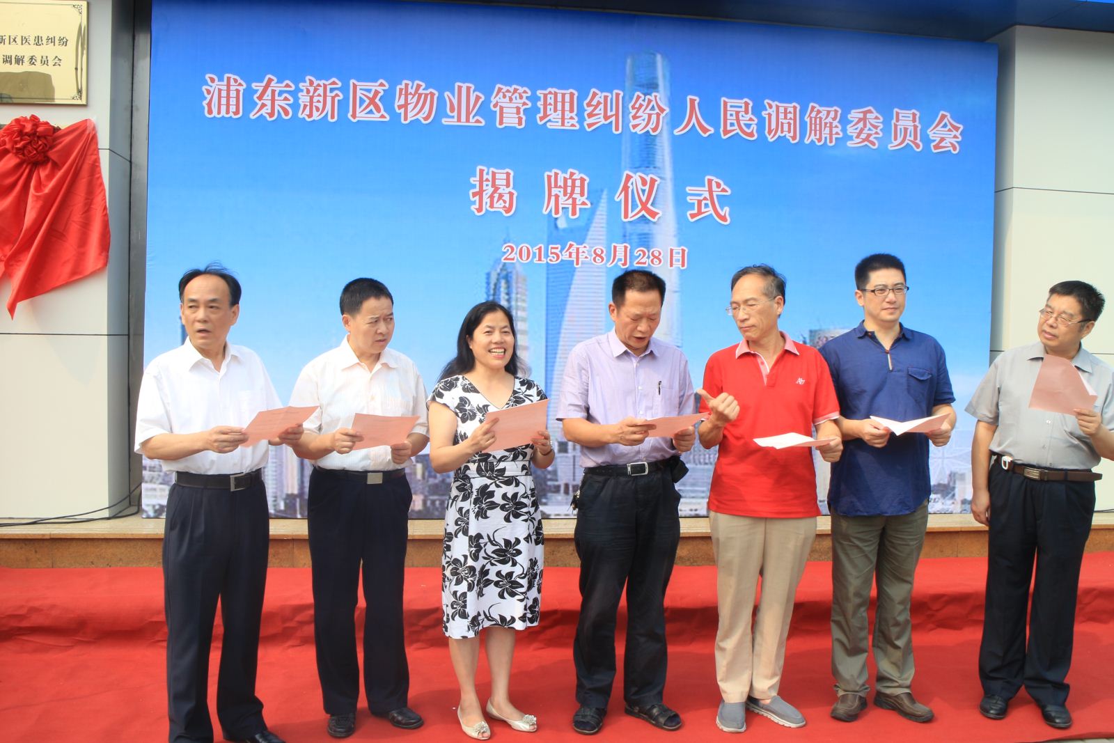 浦东新区物业管理纠纷人民调解委员会为适应社会转型期人民调解工的社会需求,专门成立了浦东新区物业管理纠纷人民调解专业调解中心。市司法局、浦东新区和有关领导十分重视,在8月28日下午专门举行了专业调解中心揭牌成立仪式。上海市司法局副局长陈春兰、浦东新区副区长路鸣、浦东新区政法委副书记施炳弟、上海市司法局基层处处长商忠强、浦东新区司法局局长李宝令、浦东新区司法局副局长黄爱武,还有律师、小区业委会主任、“老娘舅工作室”主任等出席会议。