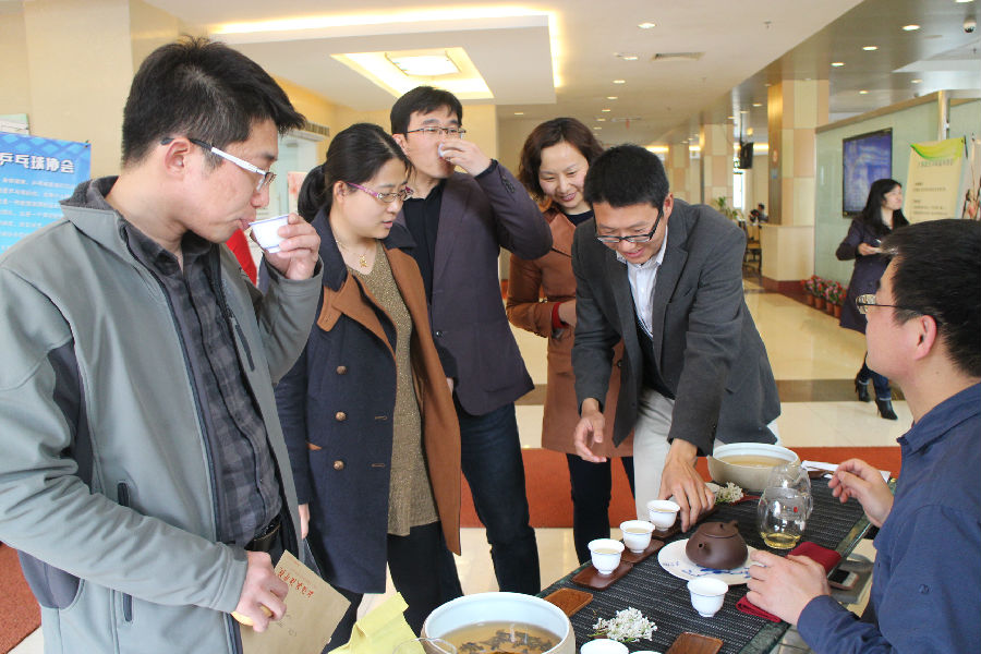 活动现场,两位热心的专业人士将茶器、茶具一一陈列摆放,搭起了一个品茶、论茶的平台。绿茶、乌龙茶等茶叶独特的清香,令众多教职工驻足,纷纷前来体验。品茗者尽享茶趣,齿颊留香。大家在品茶期间,也向两位专业人士咨询了一些关于如何选茶、鉴别茶具的问题,整个活动现场热闹非凡。