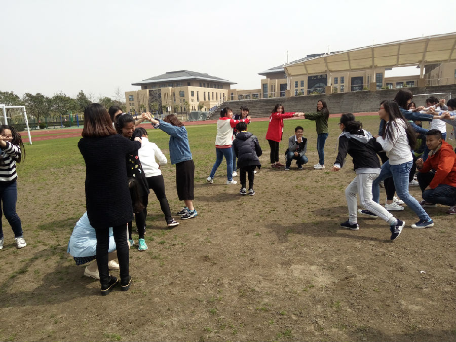 此次团体培训以破冰为目的,鉴于团队成员间相互间不熟悉,在短暂的热身活动之后,同学一起参与蛋变人游戏让气氛变得活跃了起来。肖老师趁热打铁将我们按生日月份分组进行自我介绍接龙,通过这个游戏同学们很快认识了小组的成员;接着在肖老师的指导下,同学们展开了解手链这个极其考验团队协作能力的游戏,同时也是一个需要在集体合作中发挥个人创造力的游戏,虽然游戏规则简单,但却寓意深刻,还拉近了同学们之间的距离。最后,肖老师对团队协作、领导力等活动主题进行了总结。