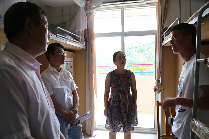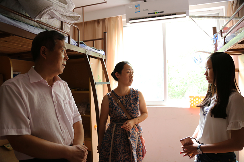 2016年9月3日下午,2016届新生首日报道完毕后,为进一步了解新生入住学校情况,法律学院党总支书记文立月、党总支副书记闯晓燕和新生辅导员一行对新生入住的宿舍逐一走访慰问。