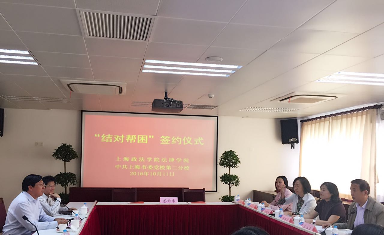 2016年10月11号上午,在上海市委党校第二分校的综合楼会议室召开了中共上海市委党校第二分校与法律学院“结对帮困”签约仪式。出席本次会议的有上海市委党校第二分校副校长沈国勤、党支部副书记、办公室副主任周宏平、支委组织委员吉同鑫、支委生活委员、青年委员王亮,新利18官方客服法律学院院长侯怀霞、党总支书记文立月、党总支副书记闯晓燕以及法律学院全体辅导员。