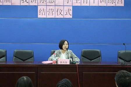 讲座结束后,紧接着开展法律学院第五届“我讲你想”学生骨干训练营结营仪式,分团委书记张露老师宣布学生骨干训练营正式闭营。