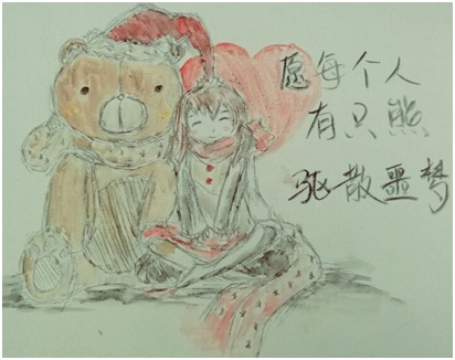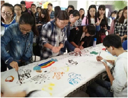 涂鸦五颜六色、形状各异:有象征幸运的四叶草、有体现拒绝拖延坚定意志的漫画、有表达学会坚强的愿景。其中最为出彩的便是一位男生经过将近一个小时的努力精心创作出的大熊漫画。他也因为自己出色的画作而获得了本次活动的一等奖。